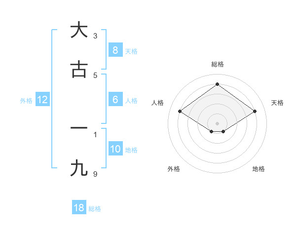 大古 一九さんの天格は8画の4点!