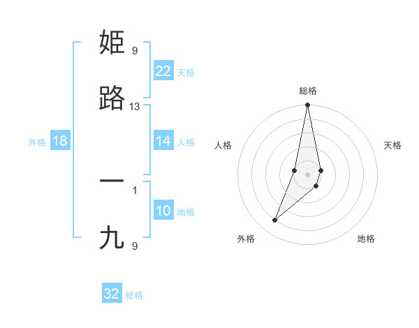 姫路 一九さんの総格は32画の5点!