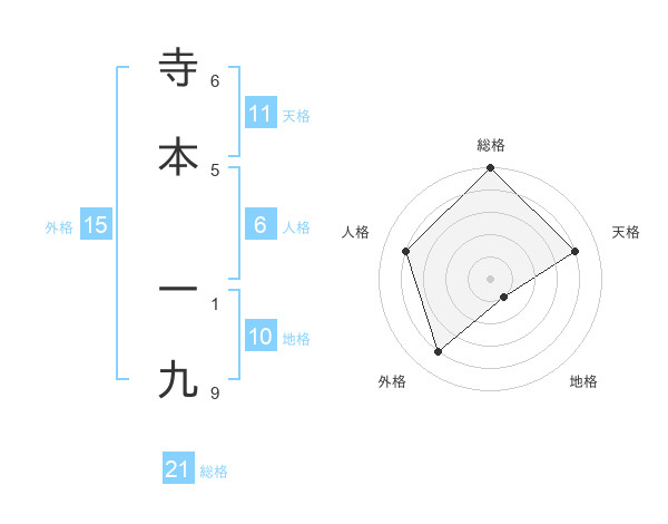 寺本 一九さんの総格は21画の5点!