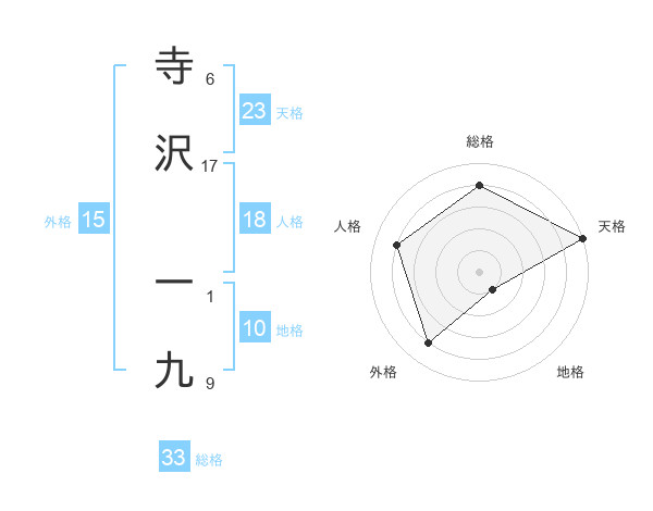 寺沢 一九さんの総格は33画の4点!