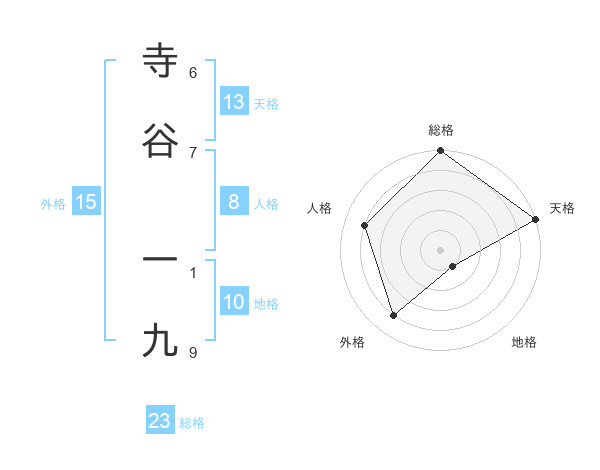寺谷 一九さんの総格は23画の5点!