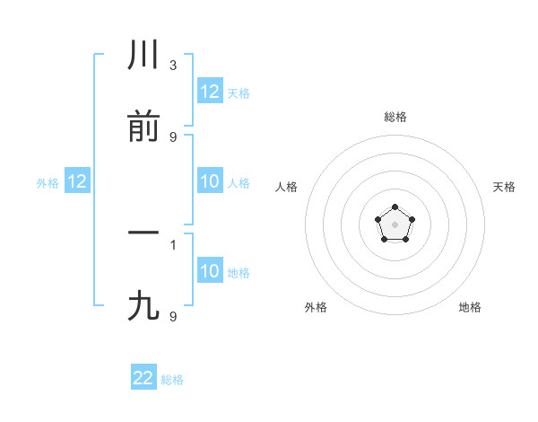 川前 一九さんの総格は22画の1点!