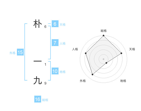 朴 一九さんの総格は16画の5点!