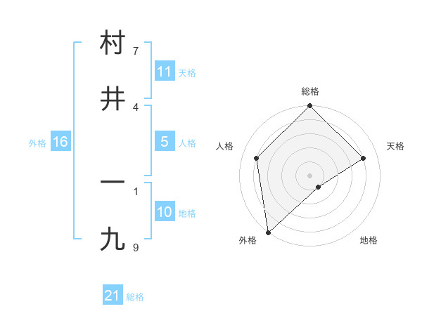 村井 一九さんの総格は21画の5点!