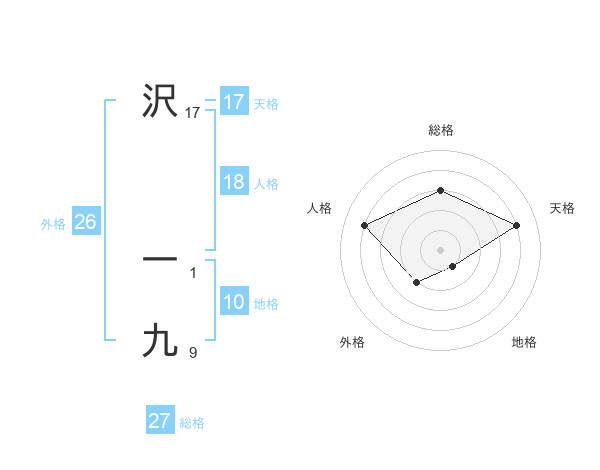 沢 一九さんの総格は27画の3点!