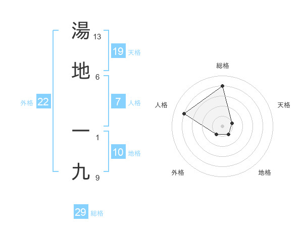 湯地 一九さんの総格は29画の4点!