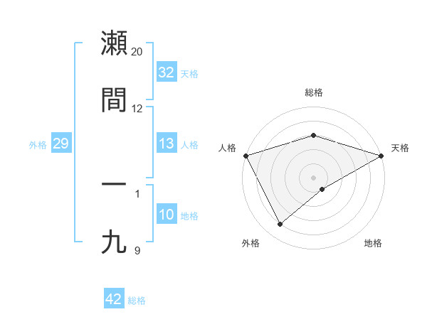 瀬間 一九さんを姓名の画数から五運を鑑定
