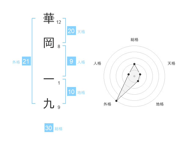 華岡 一九さんの総格は30画の2点!