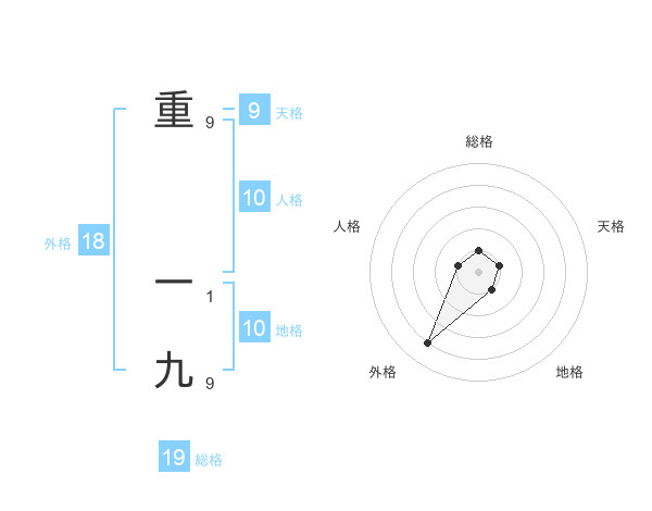 重 一九さんの総格は19画の1点!