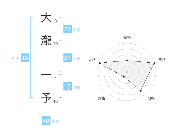 大瀧 一予さんの総格は40画の2点