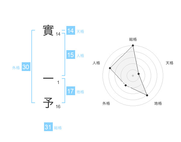 實 一予さんの地格は17画の4点!
