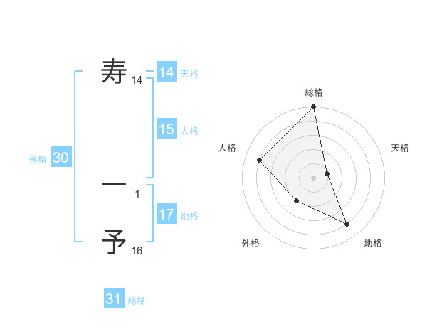 寿 一予さんの総格は31画の5点!