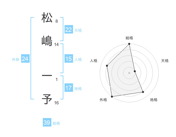 松嶋 一予さんを姓名の画数から五運を鑑定
