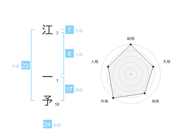 江 一予さんの外格は23画の5点!