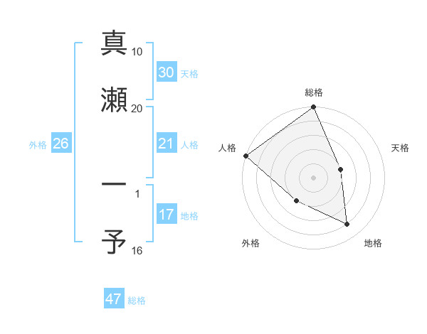真瀬 一予さんを姓名の画数から五運を鑑定
