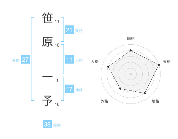笹原 一予さんの天格は21画の5点!