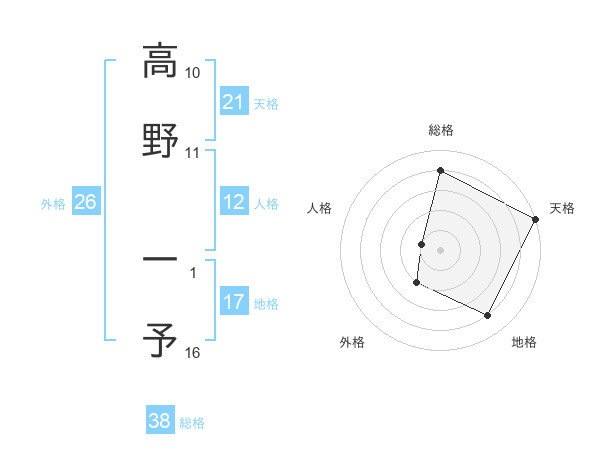 高野 一予さんの天格は21画の5点!