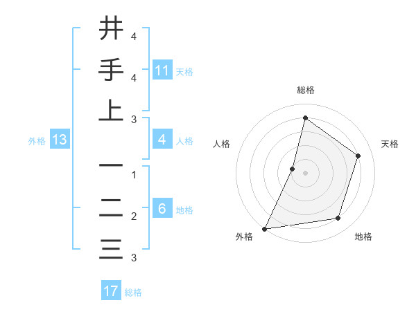 井手上 一二三さんの総格は17画の4点!