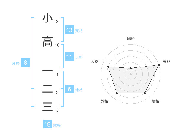 小高 一二三さんの天格は13画の5点!