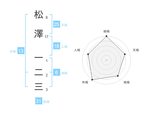 松澤 一二三さんの総格は31画の5点!