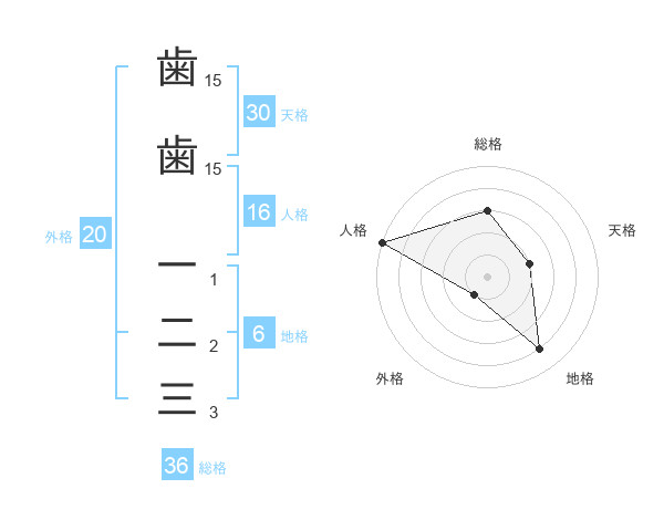 歯歯 一二三さんを姓名の画数から五運を鑑定