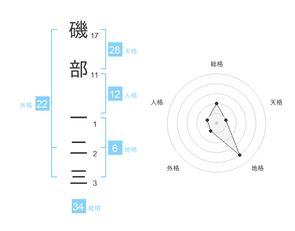 磯部 一二三さんを姓名の画数から五運を鑑定