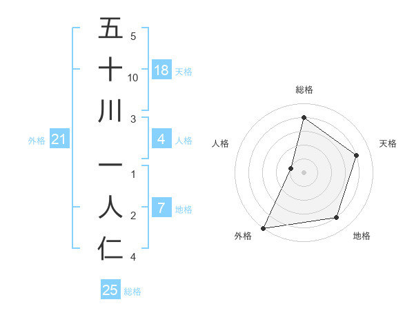 五十川 一人仁さんを姓名の画数から五運を鑑定