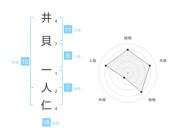 井貝 一人仁さんの総格は18画の4点!