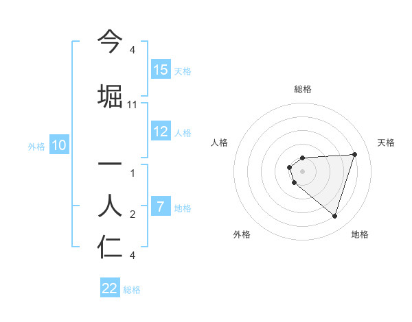 今堀 一人仁さんを姓名の画数から五運を鑑定