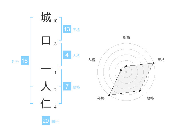 城口 一人仁さんの天格は13画の5点!