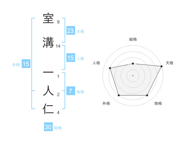 室溝 一人仁さんを姓名の画数から五運を鑑定