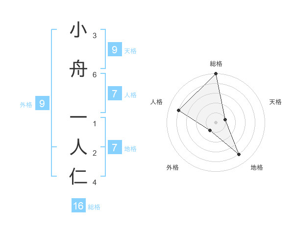 小舟 一人仁さんを姓名の画数から五運を鑑定