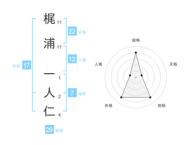 梶浦 一人仁さんの総格は29画の4点!