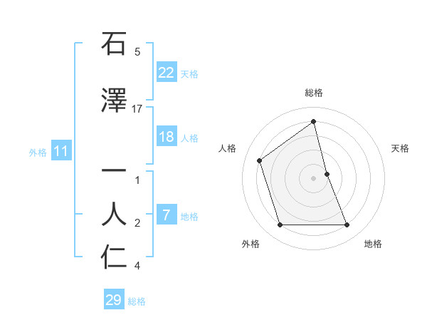 石澤 一人仁さんを姓名の画数から五運を鑑定