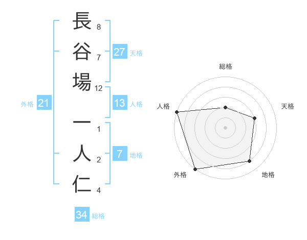 長谷場 一人仁さんの外格は21画の5点
