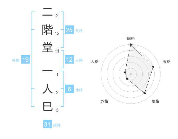二階堂 一人巳さんを姓名の画数から五運を鑑定