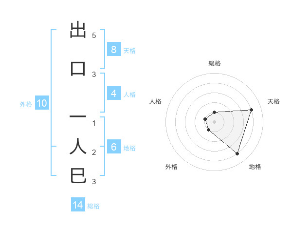 出口 一人巳さんを姓名の画数から五運を鑑定