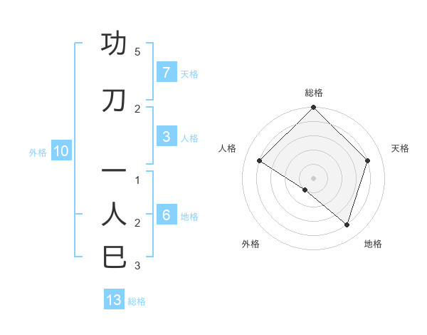 功刀 一人巳さんを姓名の画数から五運を鑑定