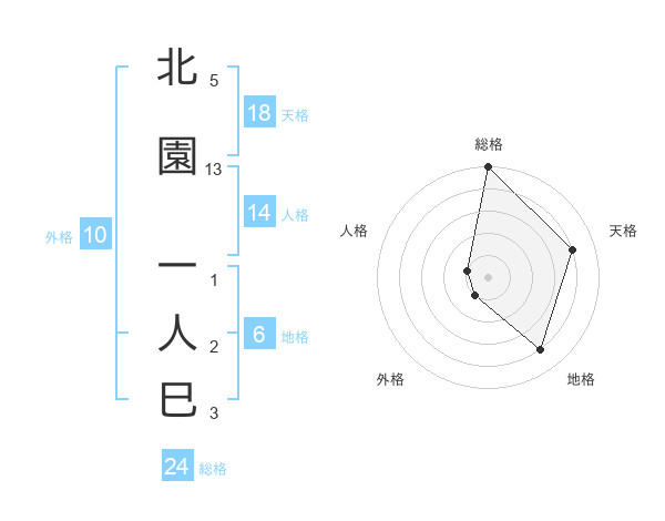 北園 一人巳さんを姓名の画数から五運を鑑定