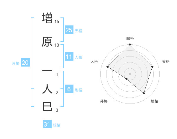 増原 一人巳さんを姓名の画数から五運を鑑定