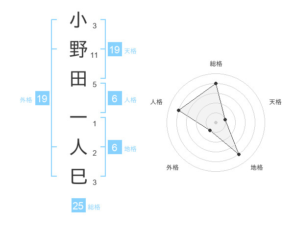 小野田 一人巳さんを姓名の画数から五運を鑑定