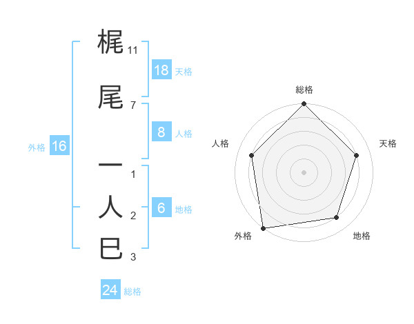 梶尾 一人巳さんを姓名の画数から五運を鑑定