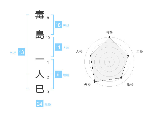 毒島 一人巳さんを姓名の画数から五運を鑑定