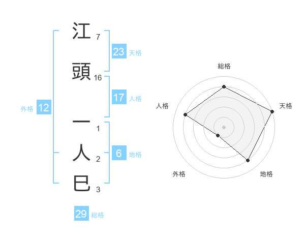 江頭 一人巳さんを姓名の画数から五運を鑑定
