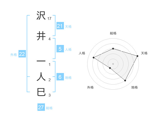 沢井 一人巳さんを姓名の画数から五運を鑑定