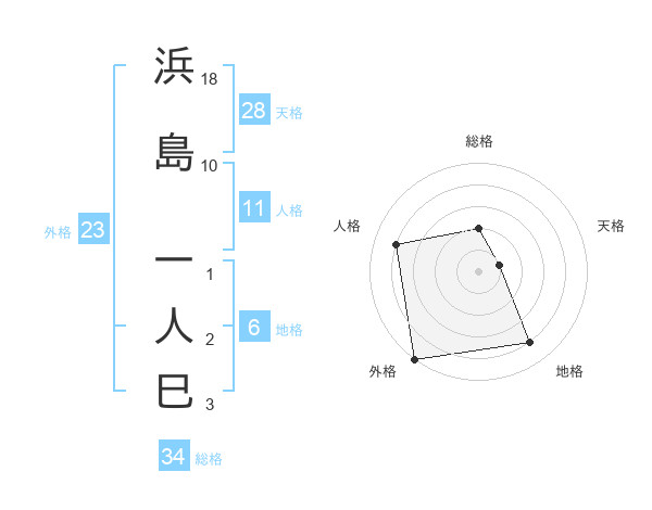 浜島 一人巳さんを姓名の画数から五運を鑑定