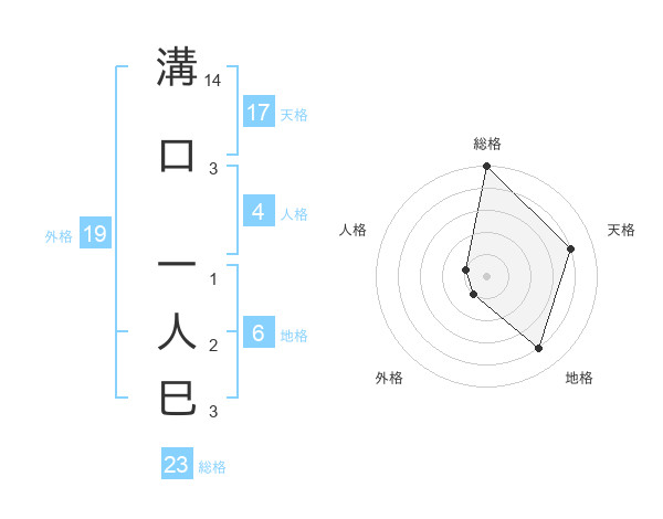 溝口 一人巳さんの天格は17画の4点!