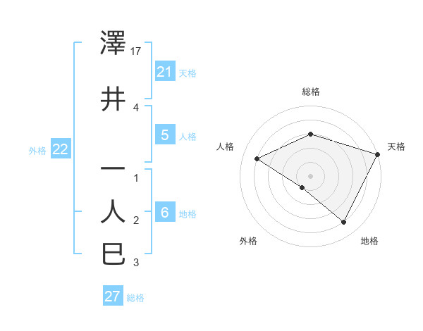 澤井 一人巳さんの総格は27画の3点!