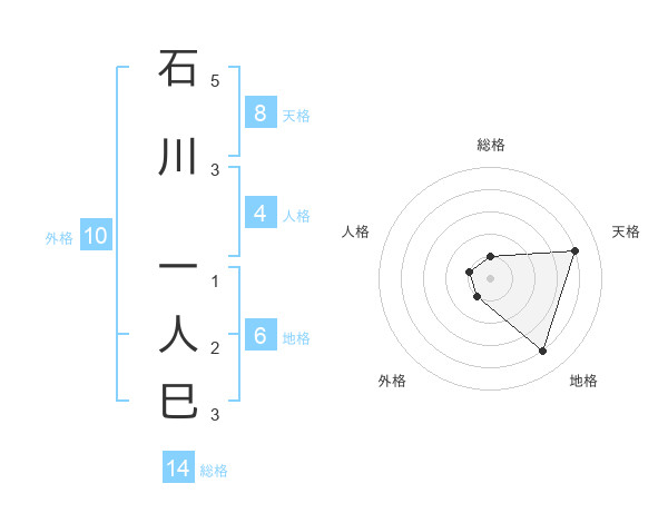 石川 一人巳さんの総格は14画の1点