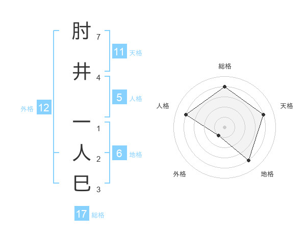 肘井 一人巳さんの総格は17画の4点!